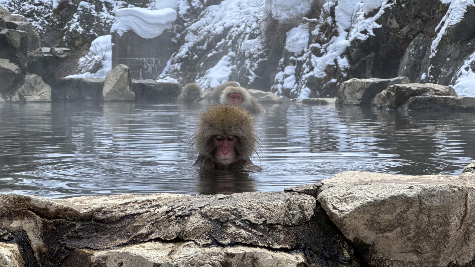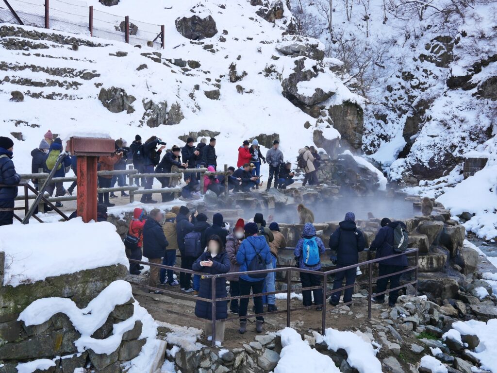 気温がマイナスになるような寒い日ほど、猿たちは暖を求めて温泉に集まります。