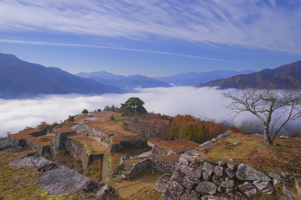 定番だけでなく、兵庫らしい印象の強い絶景も入れたいなら竹田城跡は有力です。山上に残る石垣の景色が印象的で、姫路城とはまったく違う魅力があります。特に秋の冷え込む朝は雲海の時期として知られていますが、雲海目当てでなくても石垣のスケール感と山並みの眺めは十分に見応えがあります。いっぽうで、山城なので平地の観光地より体力は使いやすく、JR竹田駅から歩く場合は登城ルートで約40分の見込みです。時間に余裕を取りにくい日より、「今日はここを主役にする」と決めて訪れるほうが満足しやすいスポットです。