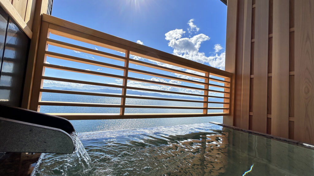 新しめの宿で、温泉とデザイン性の両方を重視したいなら蒼の湖邸 BIWAFRONT HIKONEは有力候補です。2023年8月20日開業で、公式ではホテル本館が全室レイクビュー、スタンダードタイプでもテラスを含め50平米、上位客室では自家源泉の温泉露天風呂付き客室も案内されています。