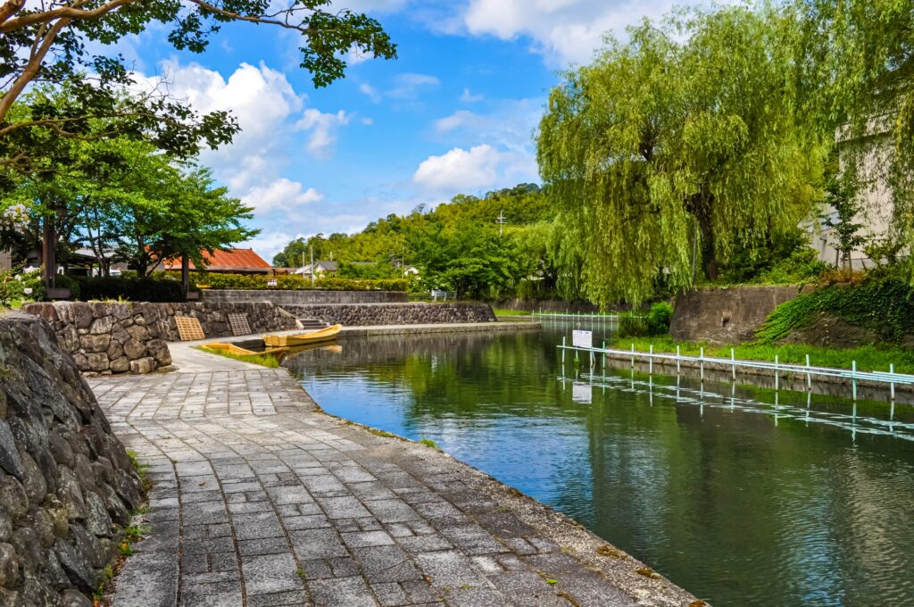 近江八幡らしい町並みを味わいたいなら、八幡堀も外せません。白壁土蔵や石畳が続き、水辺と歴史的景観が一体になった風景は、滋賀の中でも写真映えしやすい部類です。