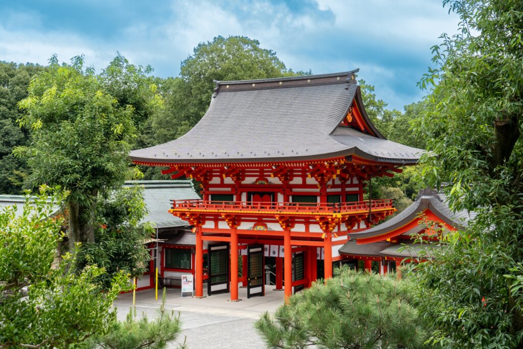 大津で神社の景観を楽しみたいなら、近江神宮も候補に入ります。鮮やかな楼門や社殿が印象的で、広めの境内を歩くだけでも雰囲気があります。