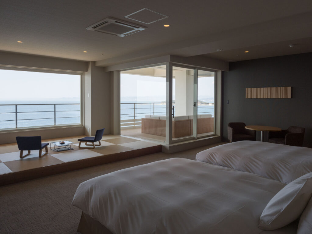 宿での過ごしやすさも重視したい子連れ旅行なら、南紀白浜マリオットホテルは見やすい候補です。アドベンチャーワールドへは車で約10分で、館内には和室や和洋室があり、家族4〜5人で泊まりやすい客室タイプを選びやすくなっています。全室40㎡以上なので、荷物が増えやすい子連れでも窮屈になりにくいのが魅力です。